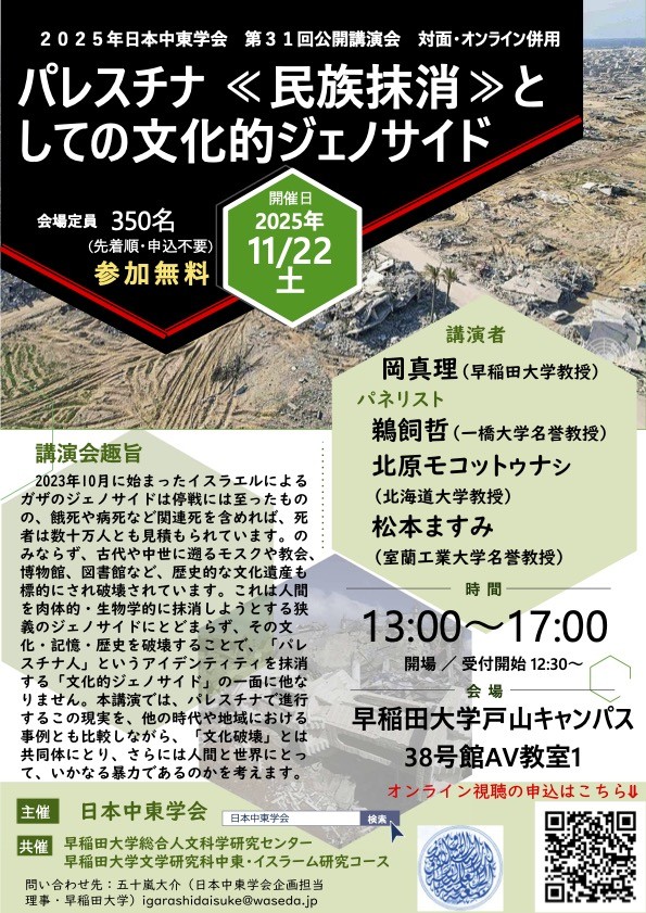 日本中東学会第31回公開講演会「パレスチナ ≪民族抹消≫としての文化的ジェノサイド」