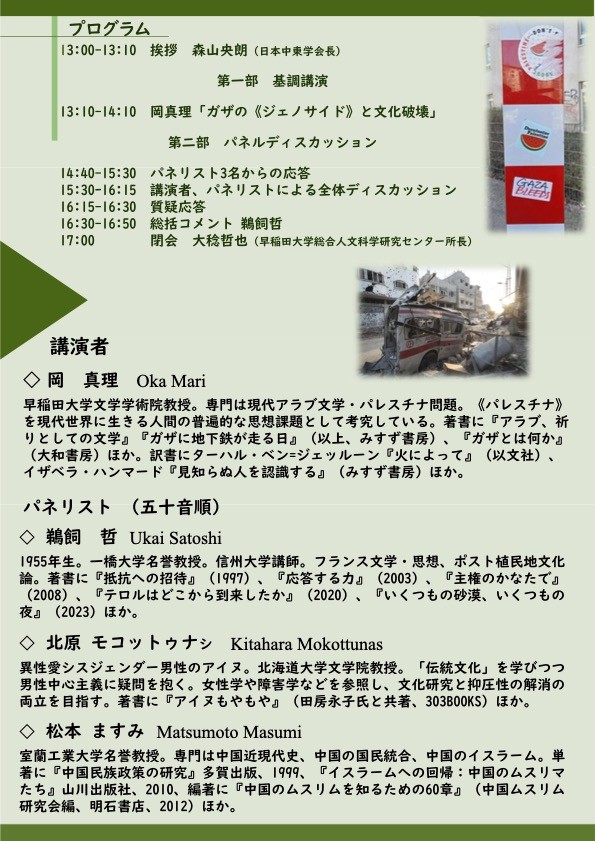 13:10-14:10 岡真理「ガザの《ジェノサイド》と文化破壊」