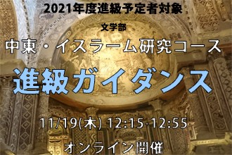 2021年進級予定者を対象に、進級ガイダンスをオンラインにて開催いたします。 日 時:11月19日(木)12:15-12:55 実施形式:zoom zoomの接続情報は当日朝公開予定です。 詳細は中東・イスラーム研究コ […]